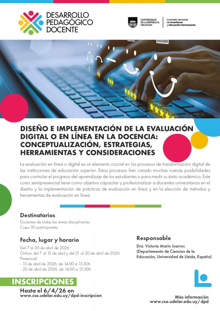 El Programa de Desarrollo Pedagógico Docente del Prorrectorado de Enseñanza de Udelar presenta el curso «Diseño e implementación de la evaluación digital o en línea en la docencia«.
