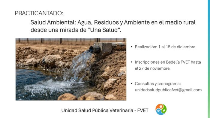 La Unidad de Salud Pública Veterinaria informa la apertura de la convocatoria para el practicantado «Salud Ambiental: Agua, Residuos y Ambiente en el medio rural desde una mirada de ‘Una Salud’».