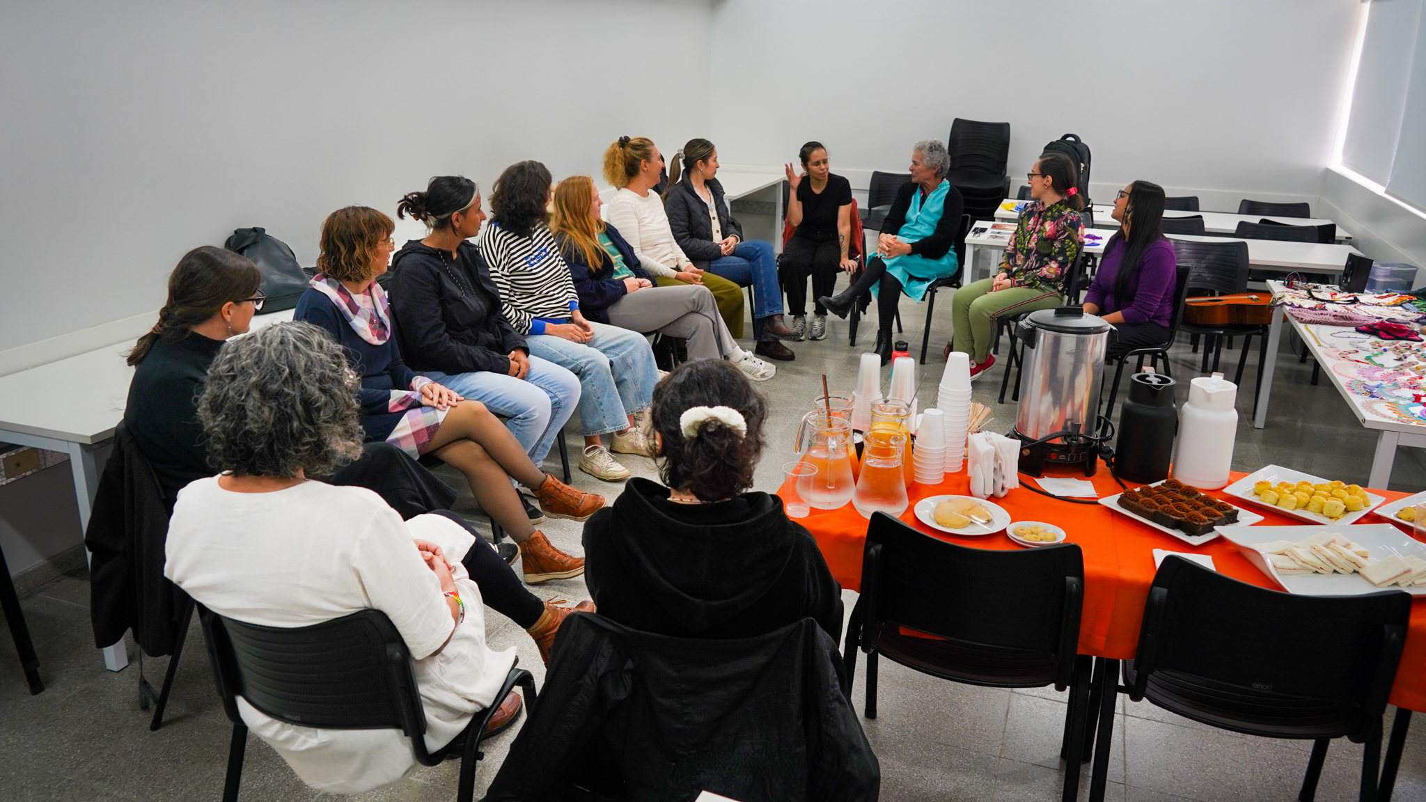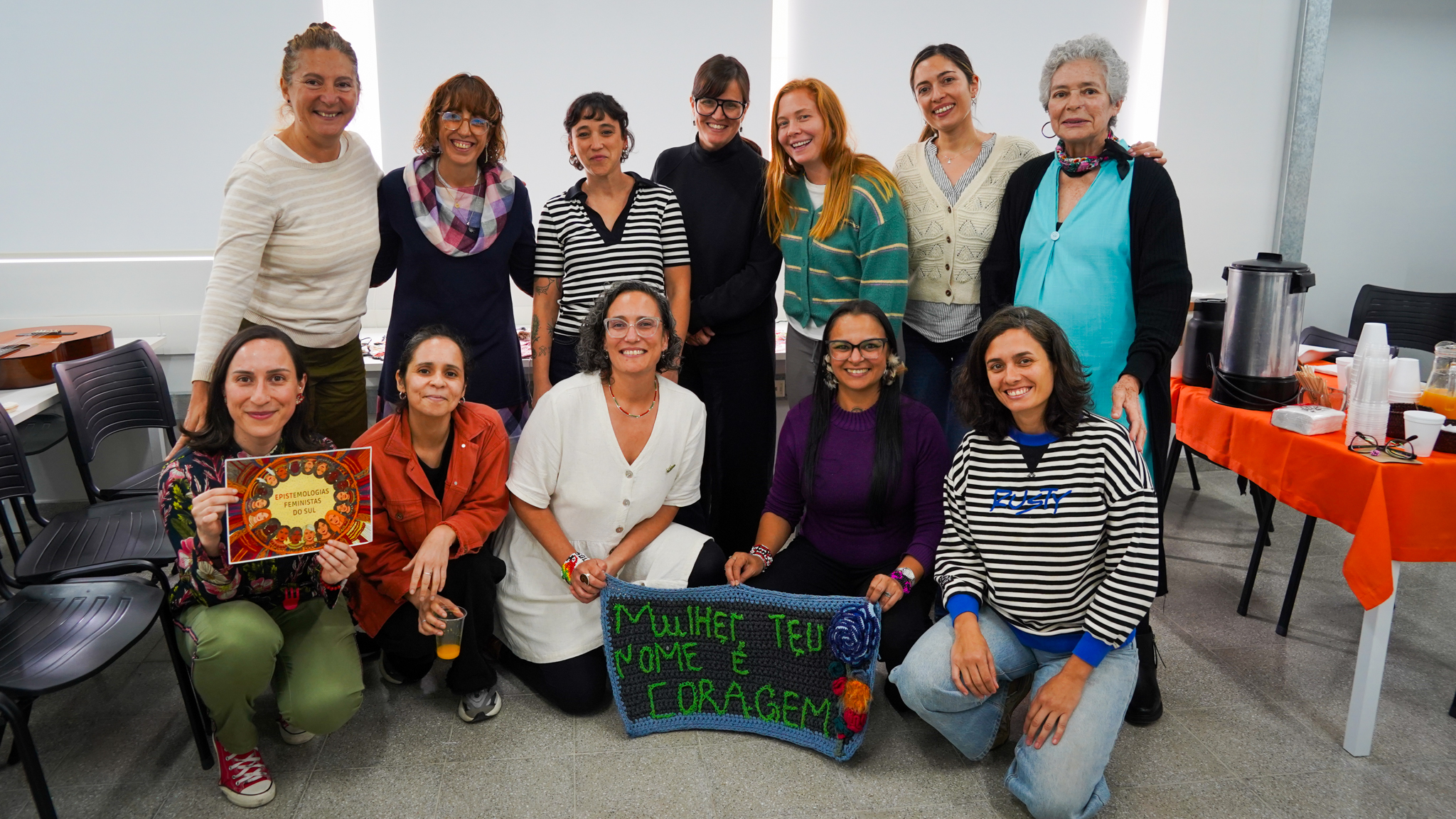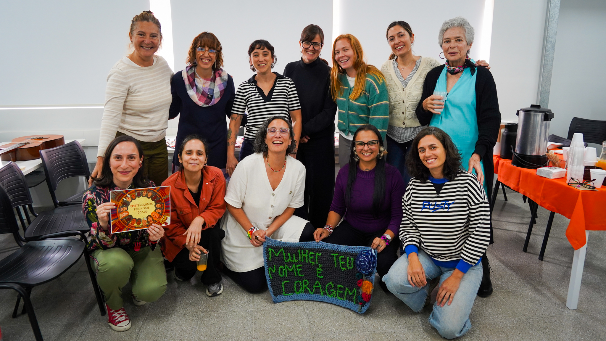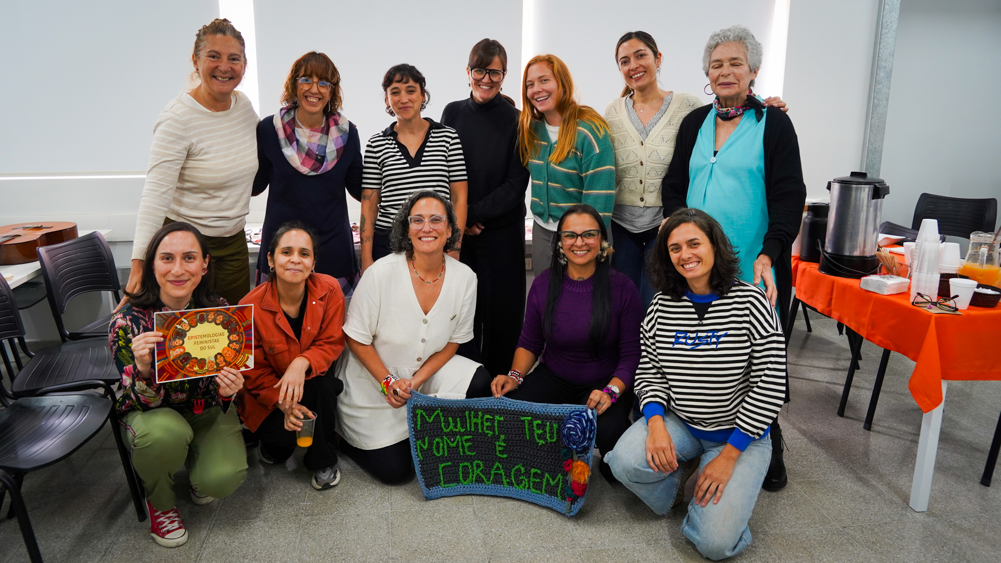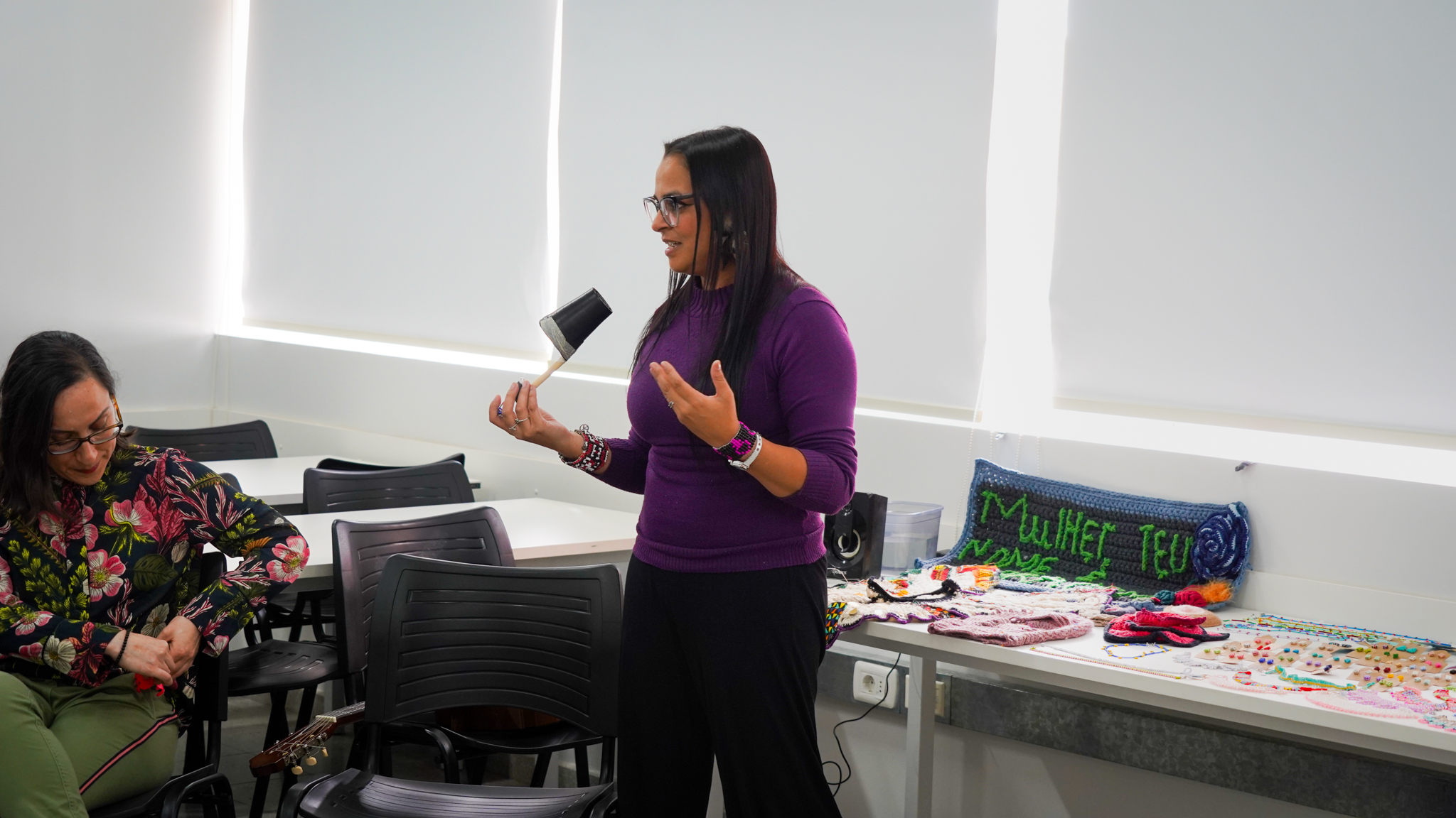 Lissette Torres Arévalo compartió sobre su proyecto de posdoctorado, que tiene como objetivo visibilizar a través de talleres de artesanía, las conexiones existentes entre memoria, creación, feminismos y cotidianidad. Explicó cómo funcionan las diversas actividades, que no se centran en sí en las técnicas artesanales como tal, sino en las diferentes posibilidades que estas permiten, incluyendo el abordaje de conversaciones entre mujeres, que surgen como un vínculo más íntimo, cuando se teje y borda en círculos. Ella es parte del Núcleo de Estudios Feministas y de Género, D’GENERUS, de la Universidad Federal de Pelotas, UFPel y su proyecto de post doctorado en Educación, titulado Epistemologías Feministas do Sul: entre fios e miçangas (Epistemologías Feministas del Sur: entre hilos y mostacillas), es financiado por el Consejo Nacional de Desarrollo Científico y Tecnológico, CNPq, de Brasil, a través del proceso 150526/2024-5.