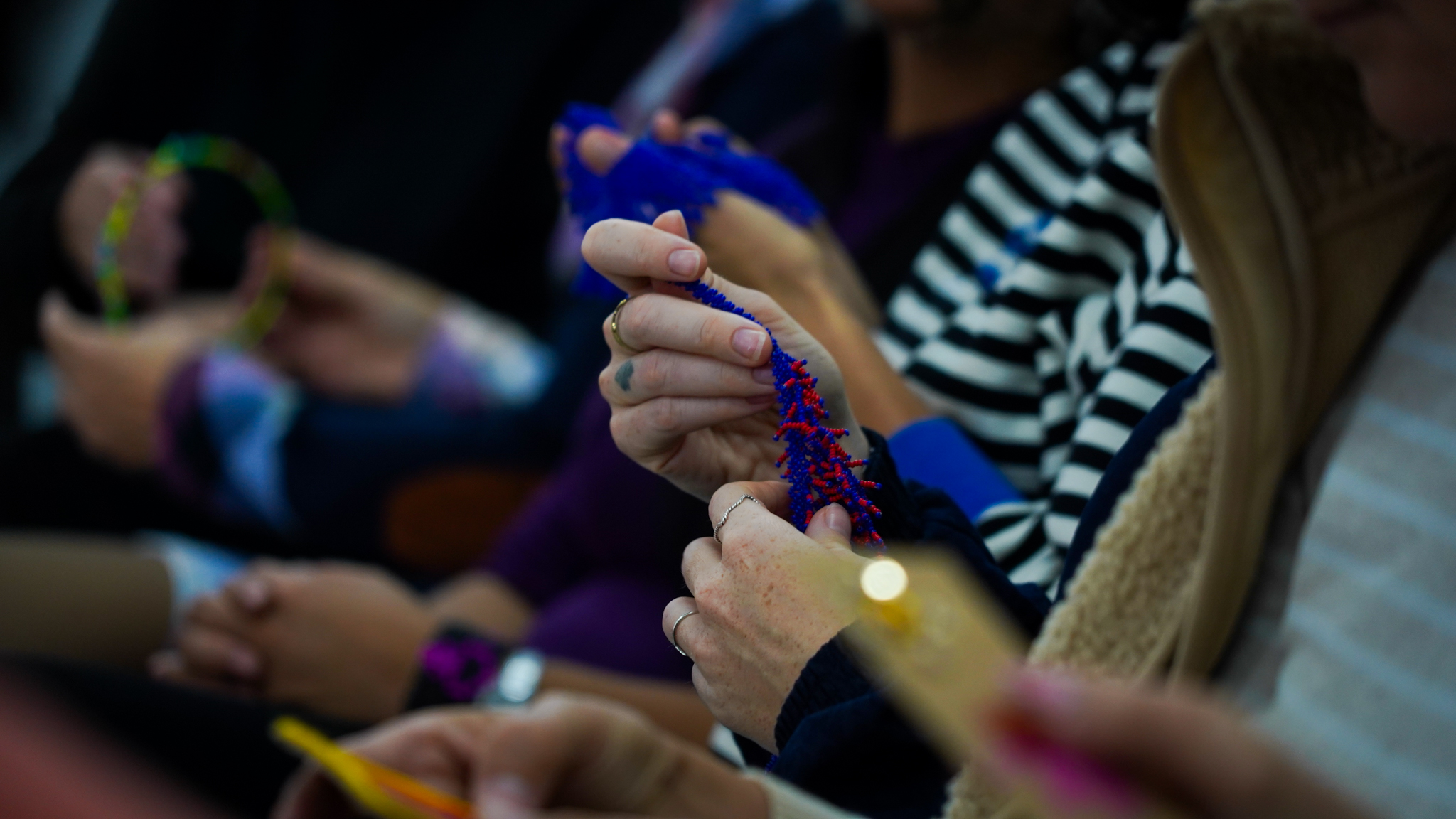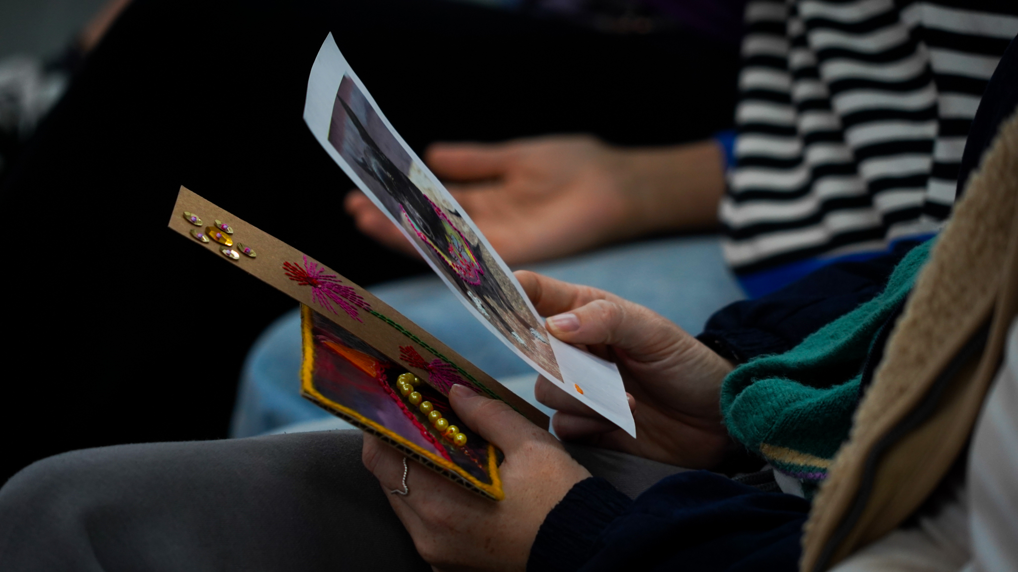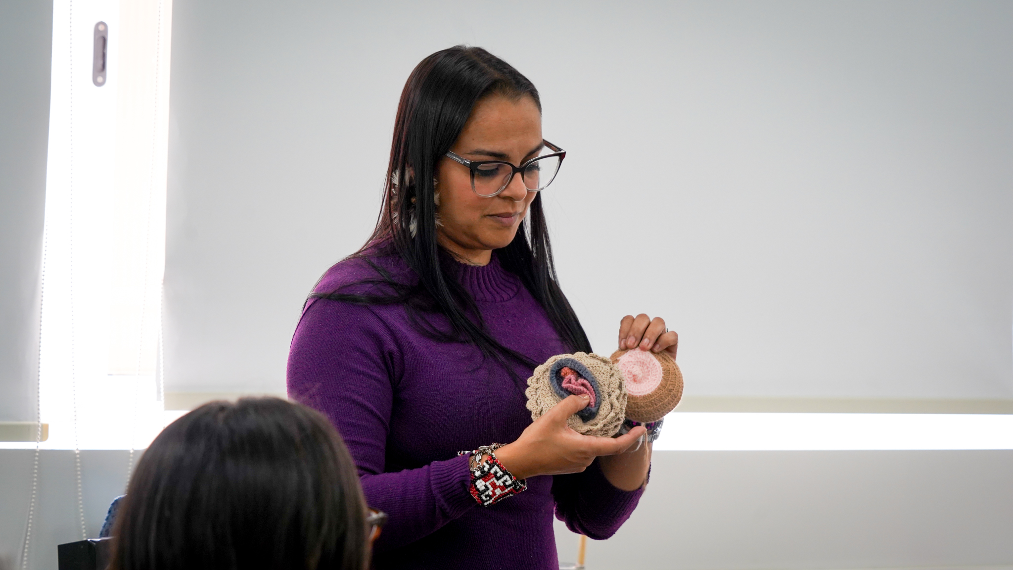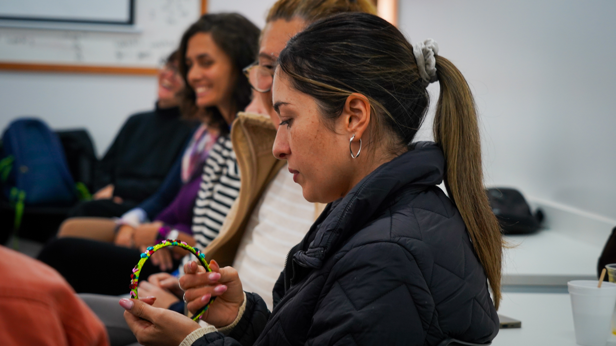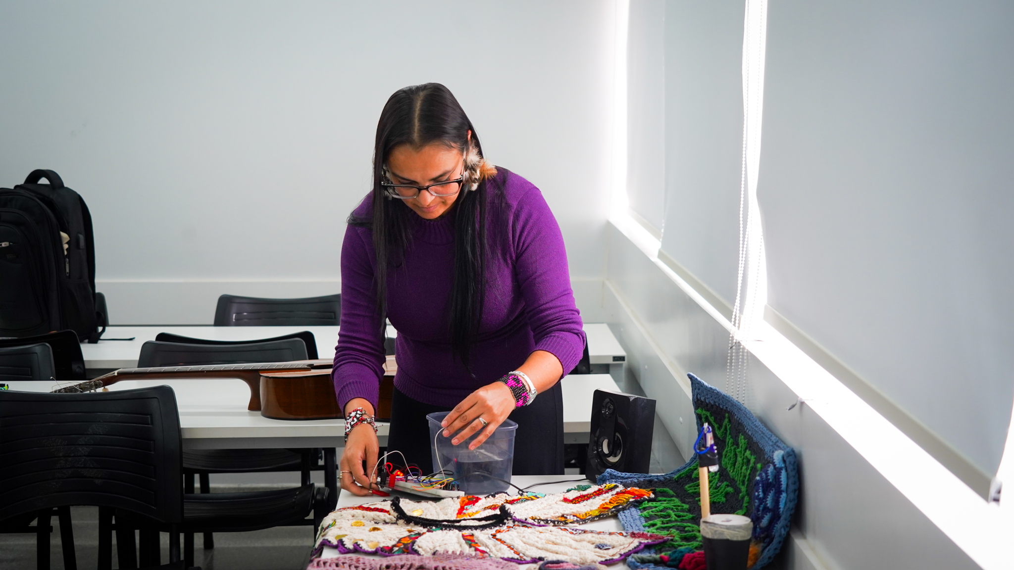Lissette Torres Arévalo compartió sobre su proyecto de posdoctorado, que tiene como objetivo visibilizar a través de talleres de artesanía, las conexiones existentes entre memoria, creación, feminismos y cotidianidad. Explicó cómo funcionan las diversas actividades, que no se centran en sí en las técnicas artesanales como tal, sino en las diferentes posibilidades que estas permiten, incluyendo el abordaje de conversaciones entre mujeres, que surgen como un vínculo más íntimo, cuando se teje y borda en círculos. Ella es parte del Núcleo de Estudios Feministas y de Género, D’GENERUS, de la Universidad Federal de Pelotas, UFPel y su proyecto de post doctorado en Educación, titulado Epistemologías Feministas do Sul: entre fios e miçangas (Epistemologías Feministas del Sur: entre hilos y mostacillas), es financiado por el Consejo Nacional de Desarrollo Científico y Tecnológico, CNPq, de Brasil, a través del proceso 150526/2024-5.